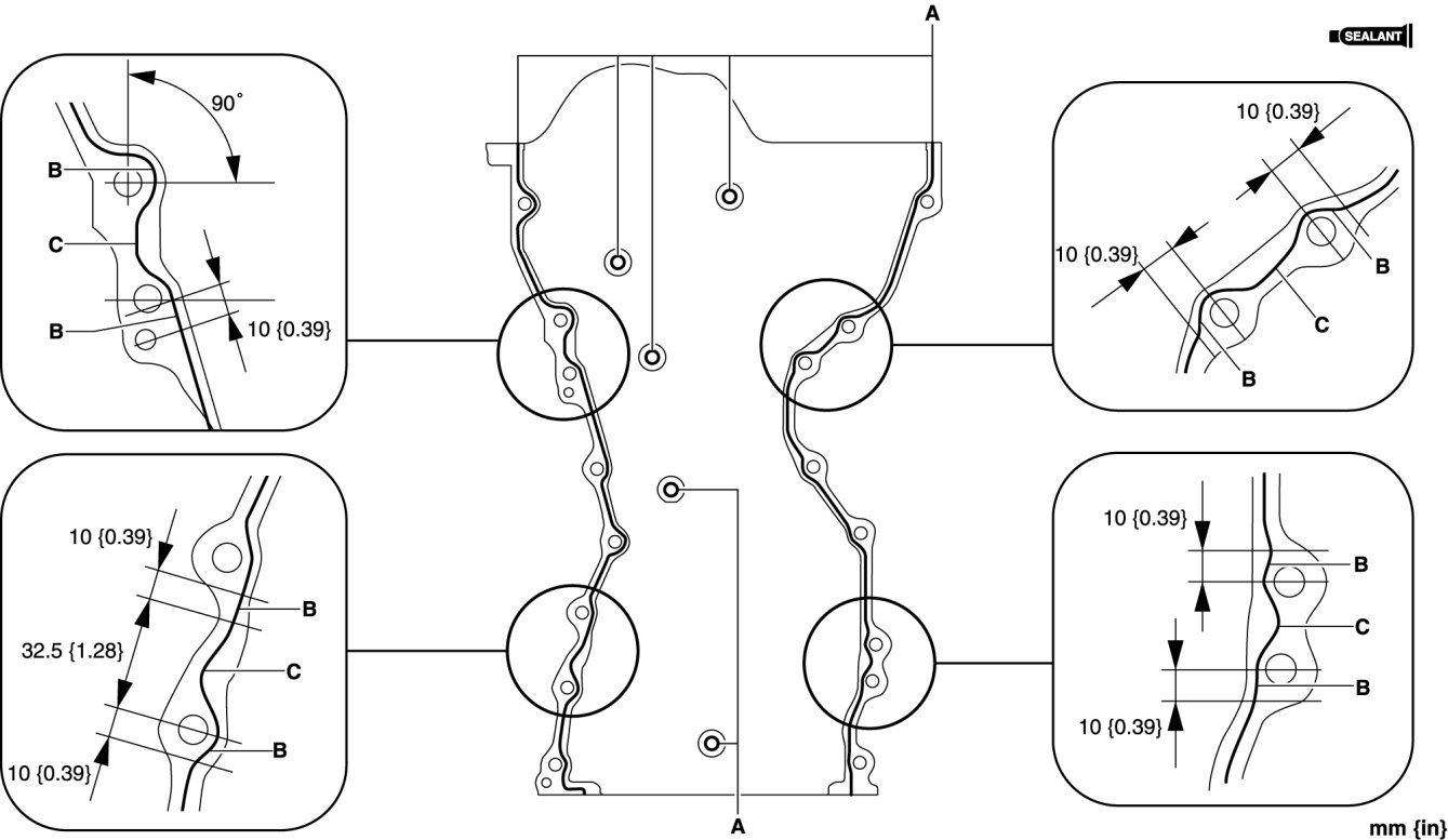 4. Apply silicone sealant to the engine front cover as shown in the figure.