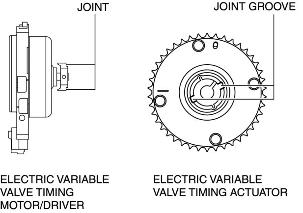 - The electric variable valve timing motor/driver can be assembled with the joint groove of the eccentric shaft in any position, and it will not lead to vehicle damage or performance reduction.