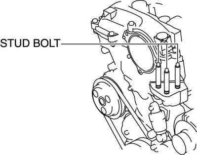 - For a new engine front cover, the positioning pins in the two locations shown in the figure project to the outside of the engine.