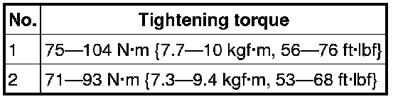 - Step 1: 90-110 Nm {9.2-11 kgf-m, 67-81 ft-lbf}