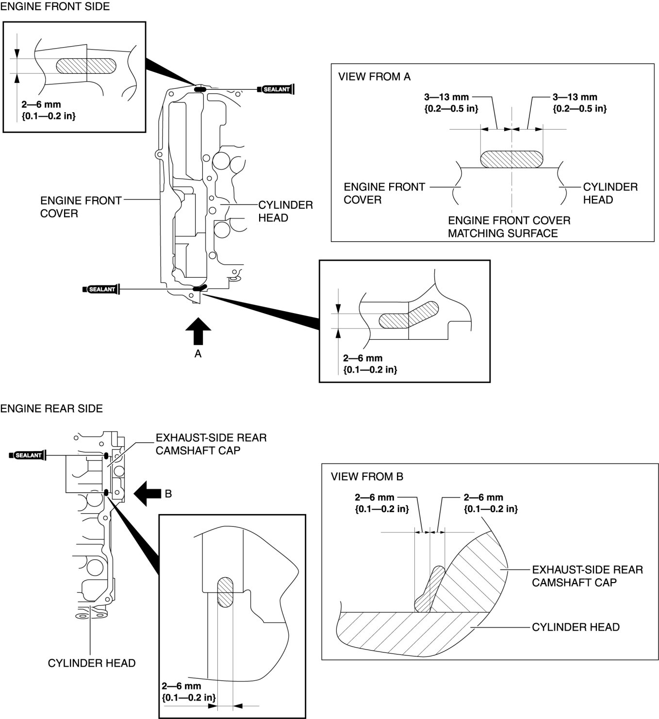 - To prevent silicone sealant from hardening, adhere the cylinder head cover and the cylinder head firmly within 10 min. after applying silicone sealant. After adhering them, tighten the installation bolts immediately.