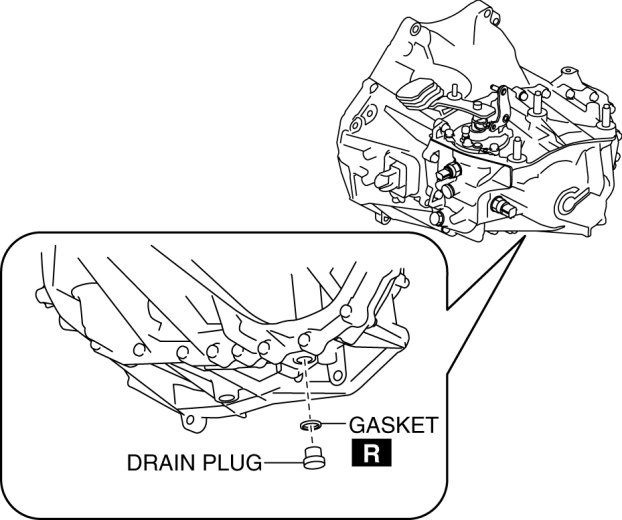 3. Remove the drain plug and gasket, and drain the manual transaxle oil.