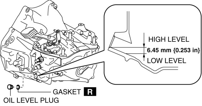 4. Verify that the manual transaxle oil is near the brim of the plug port.