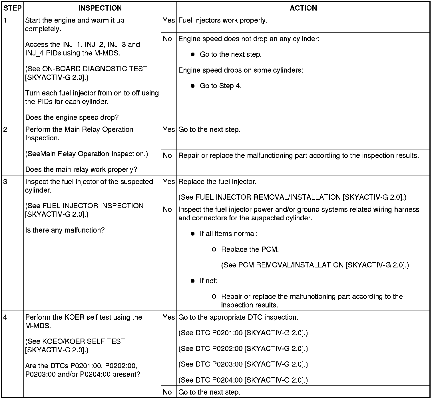 - This inspection has to be performed after the Fuel Injector Operation Inspection.