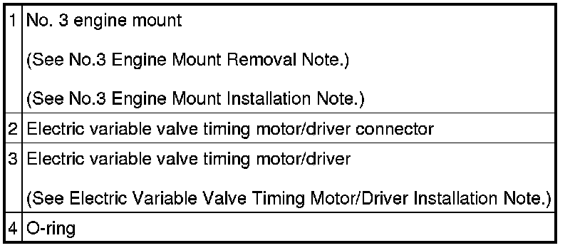 - Applying excessive force (force of 100 N {10.2 kgf, 22.5 lbf} or more) to the electric variable valve timing motor/driver may cause a malfunction. When servicing, be careful not to apply excessive force to the electric variable valve timing motor/driver using other parts or tools.