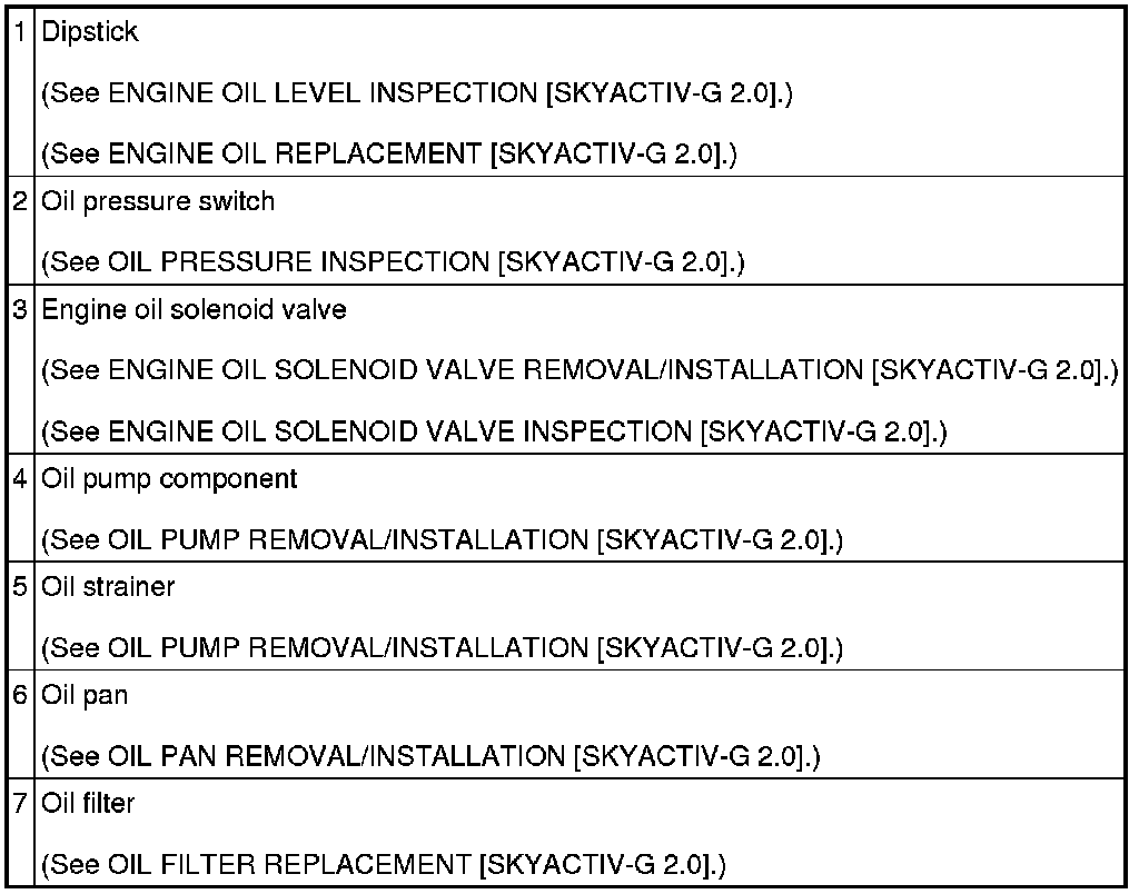 LUBRICATION SYSTEM LOCATION INDEX [SKYACTIV-G 2.0]