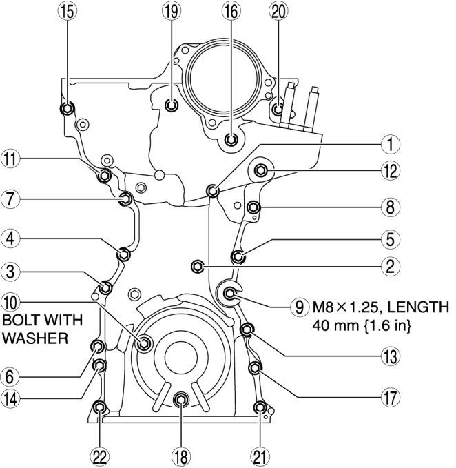 Tighten the engine front cover installation bolts in the order shown in the figure.