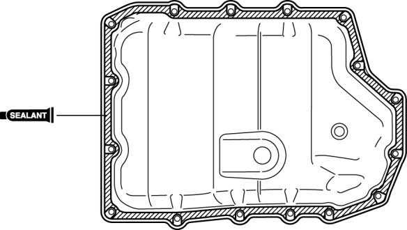 16. Install the oil pan with new bolts before the applied sealant starts to harden.