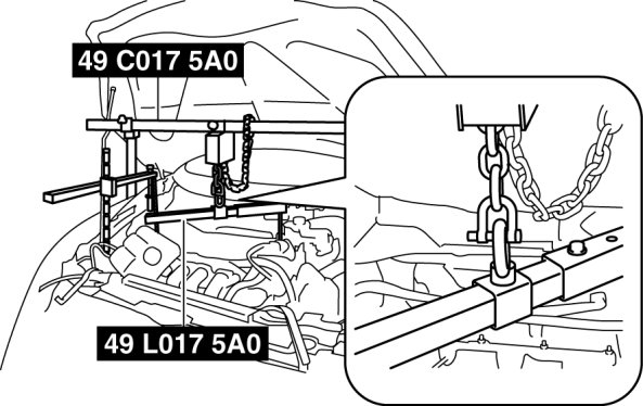 - Install the SST (49 L017 5A0) so that it does not interfere with parts such as the fuel pipe. If the SST (49 L017 5A0) interferes, parts such as the fuel pipe could be damaged.