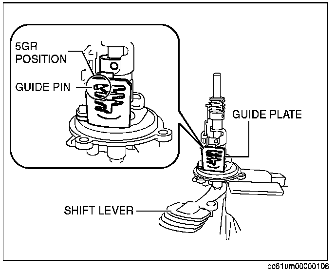 4. Move the shift lever to set the guide pin to the 5GR position of the guide plate.