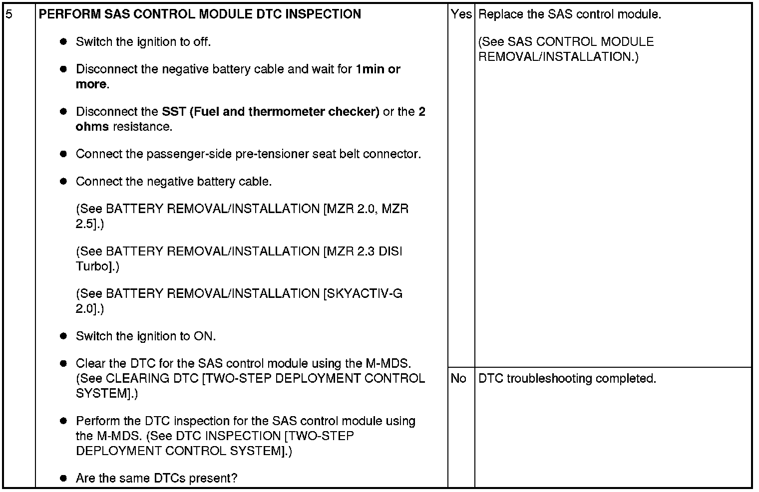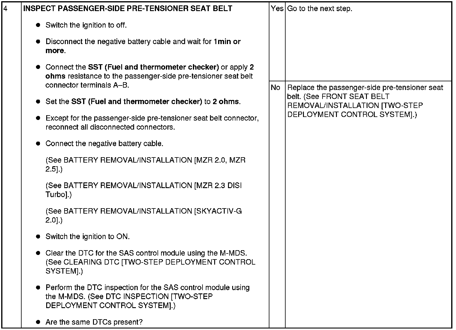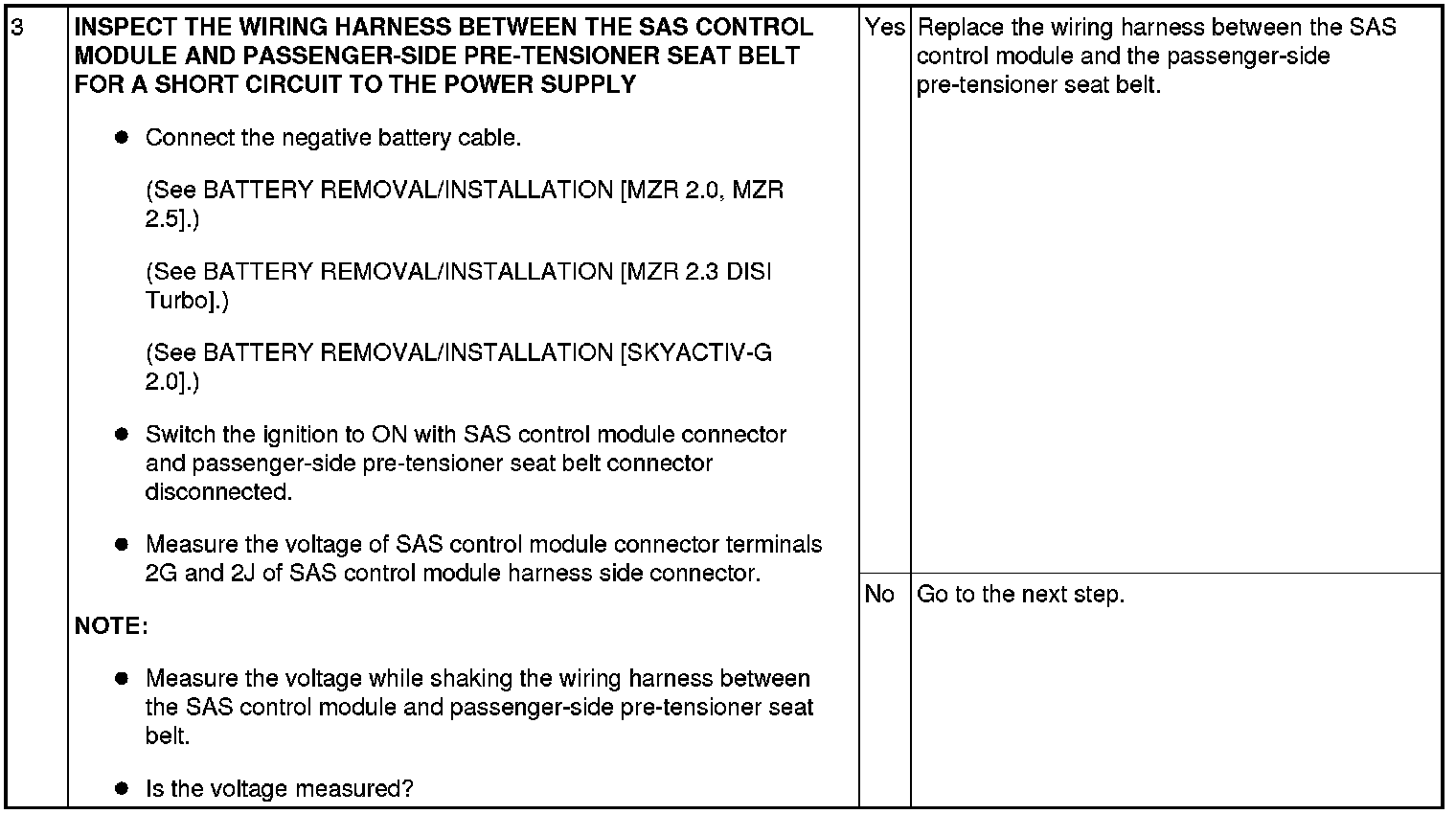 - Open or short circuit or short to ground or short to power supply in the wiring harness between the passenger-side pre-tensioner seat belt and SAS control module