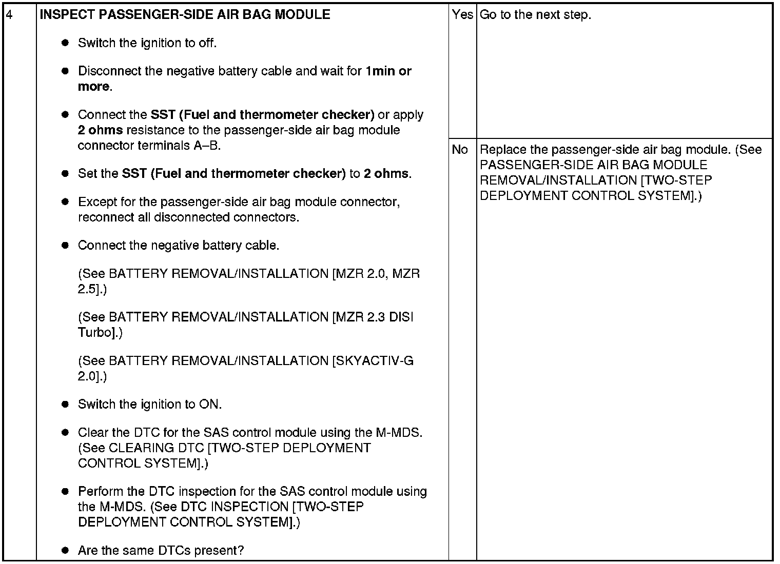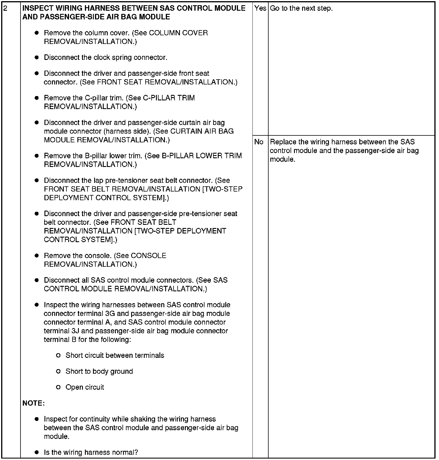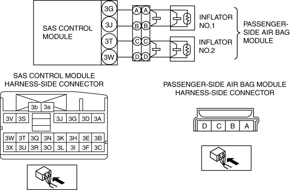 - Malfunction in the wiring harness between the passenger-side air bag module (inflator No.1) and SAS control module