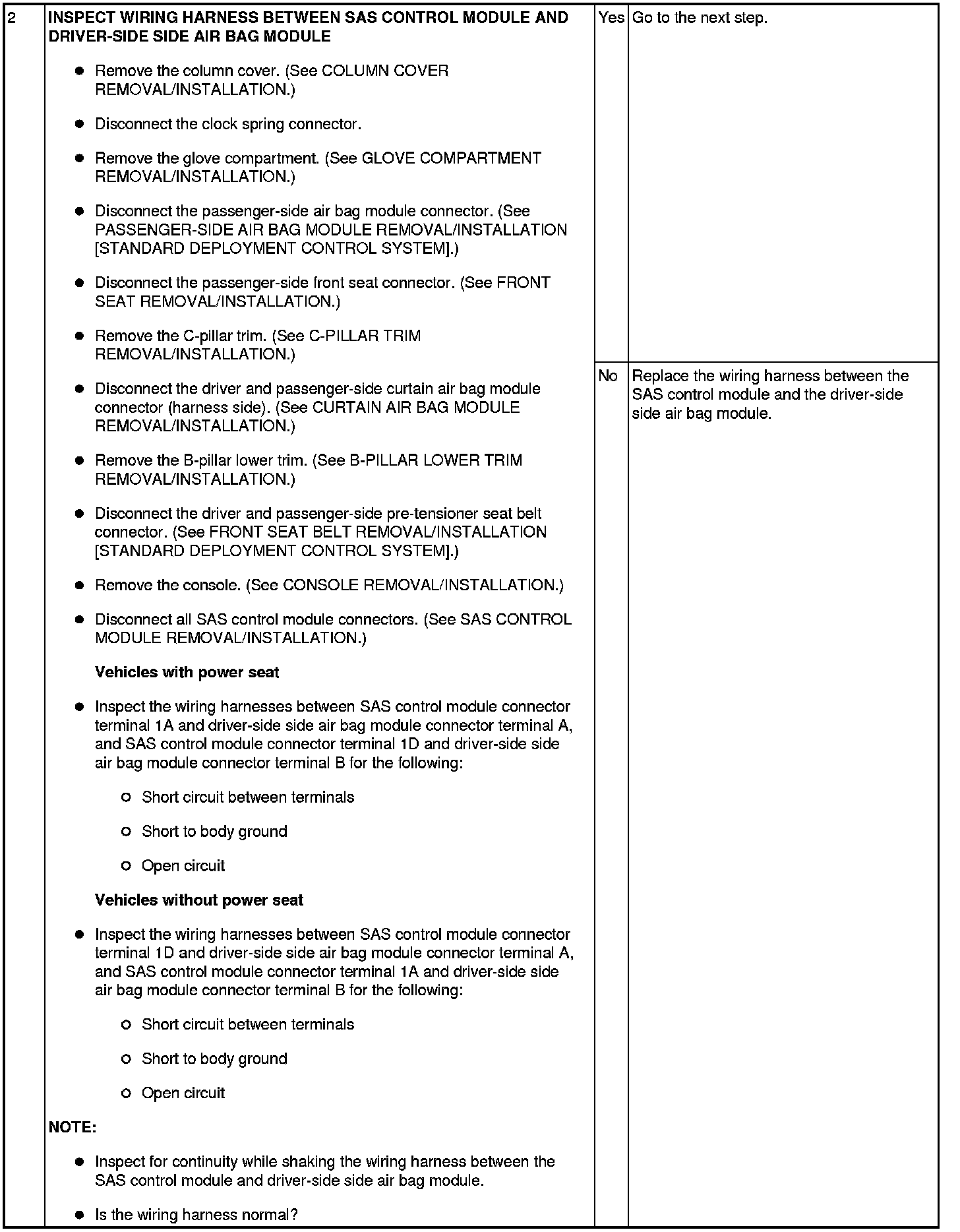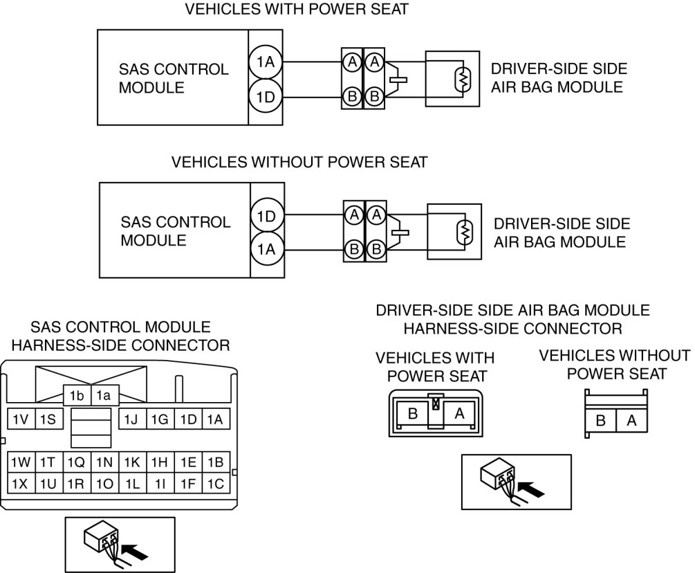 - Wiring harness between the driver-side side air bag module and SAS control module has a malfunction