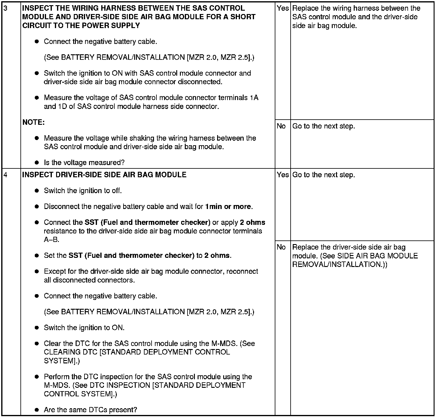 - Open or short circuit or short to ground or short to power supply in the wiring harness between the driver-side side air bag module and SAS control module