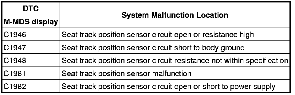 - Malfunction in seat track position sensor circuit.