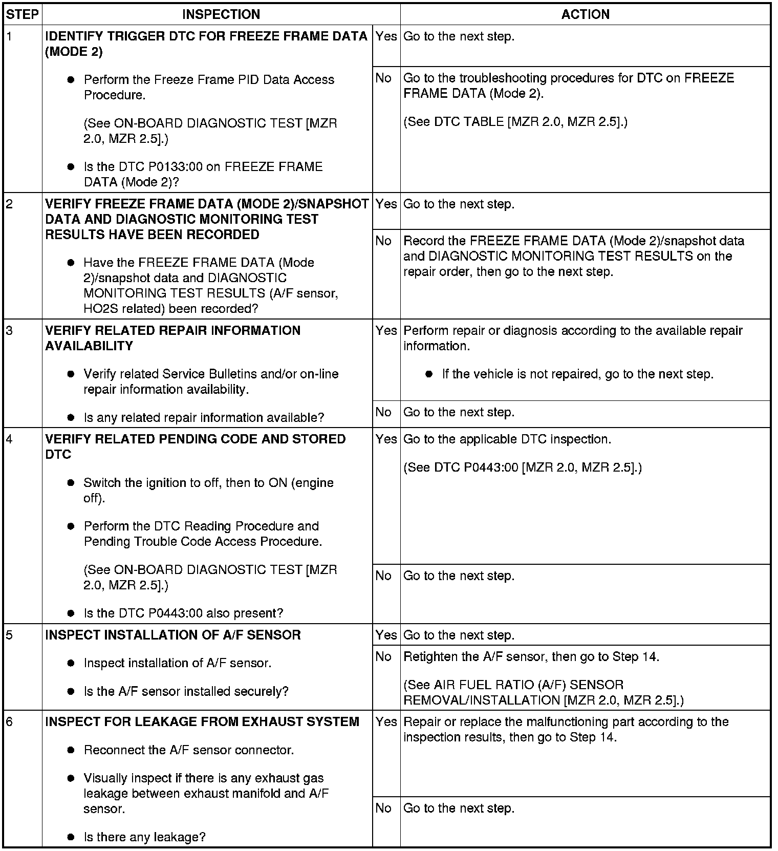 DTC P0133:00 [MZR 2.0, MZR 2.5]