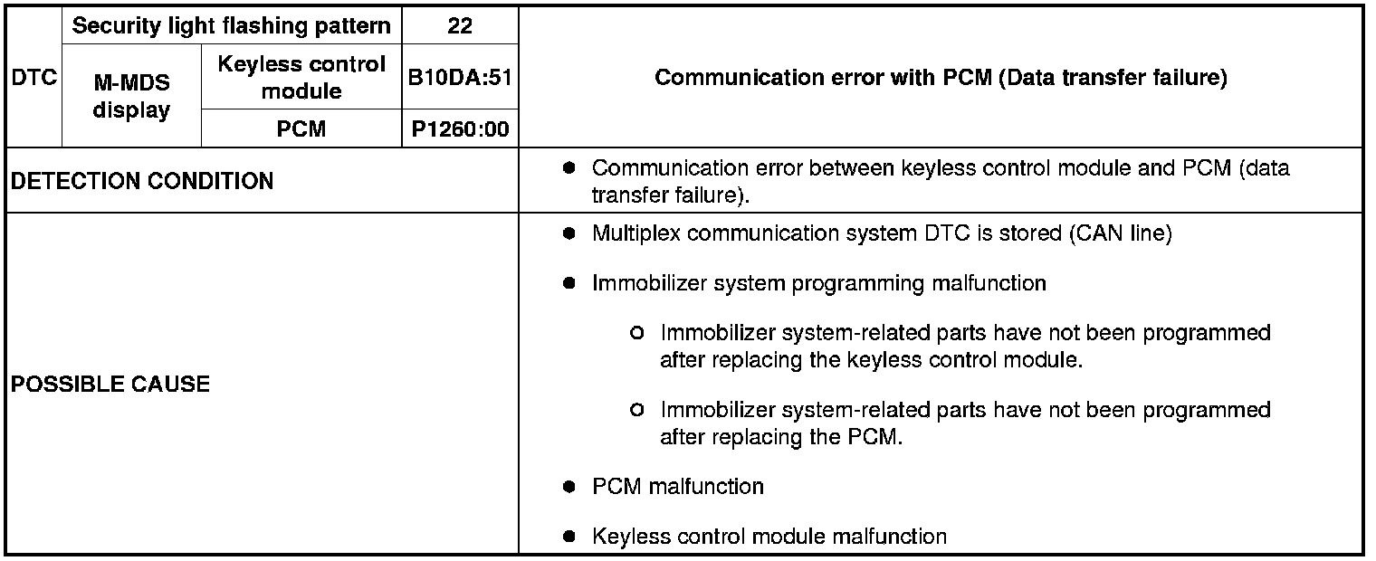 SECURITY LIGHT: 22, DTC: B10DA:51 / P1260:00 [IMMOBILIZER SYSTEM (ADVANCED KEYLESS ENTRY AND PUSH BUTTON START SYSTEM)]