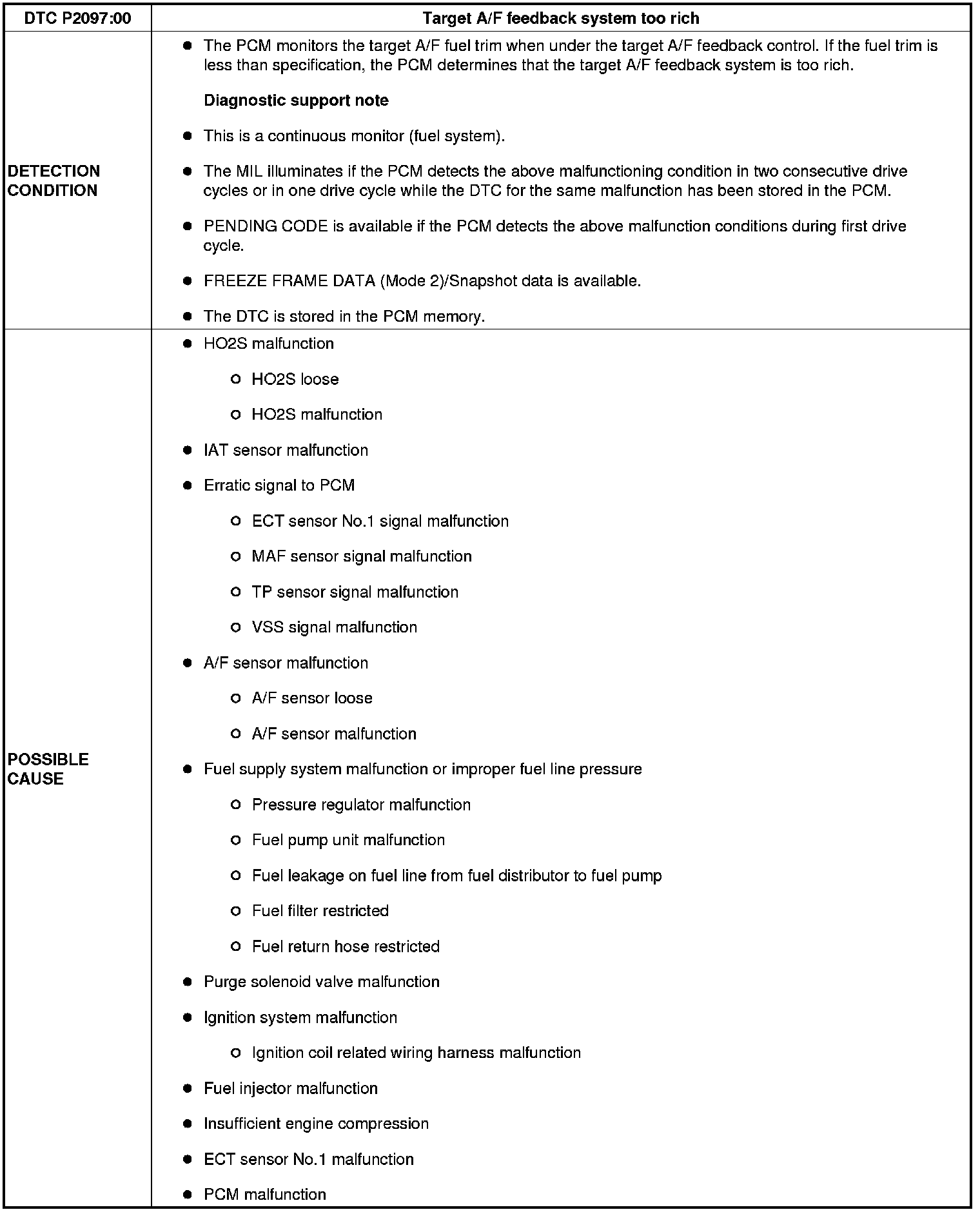 DTC P2097:00 [MZR 2.0, MZR 2.5]