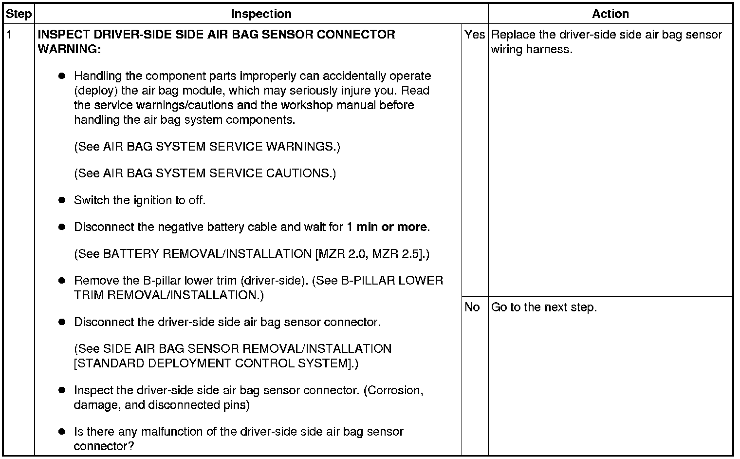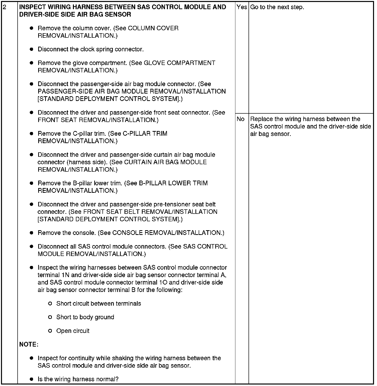 - Open or short circuit or short to ground or short to power supply in the wiring harness between the driver-side side air bag sensor and SAS control module