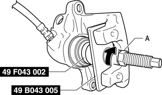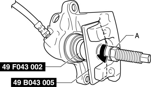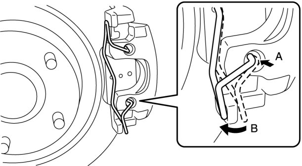 4. Rotate part A on the SST in the direction of the arrow and secure the SST to the caliper.