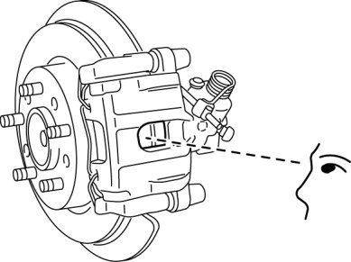 4. Replace the pads as a set (right and left wheels) if either one is at or less than the minimum thickness.