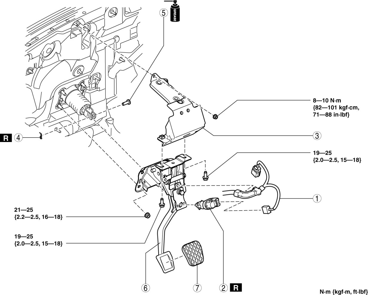 2. Disconnect the accelerator pedal connector. Service and Repair