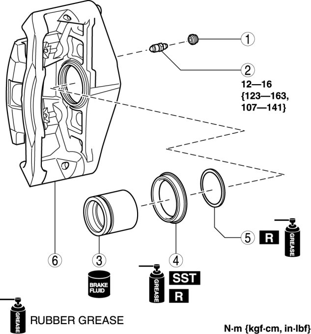 CALIPER (FRONT) DISASSEMBLY/ASSEMBLY [MZR 2.3 DISI Turbo]