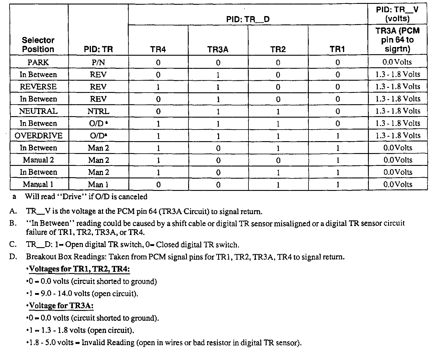 DIGITAL TRANSMISSION RANGE (TR) SENSOR DIAGNOSIS CHART