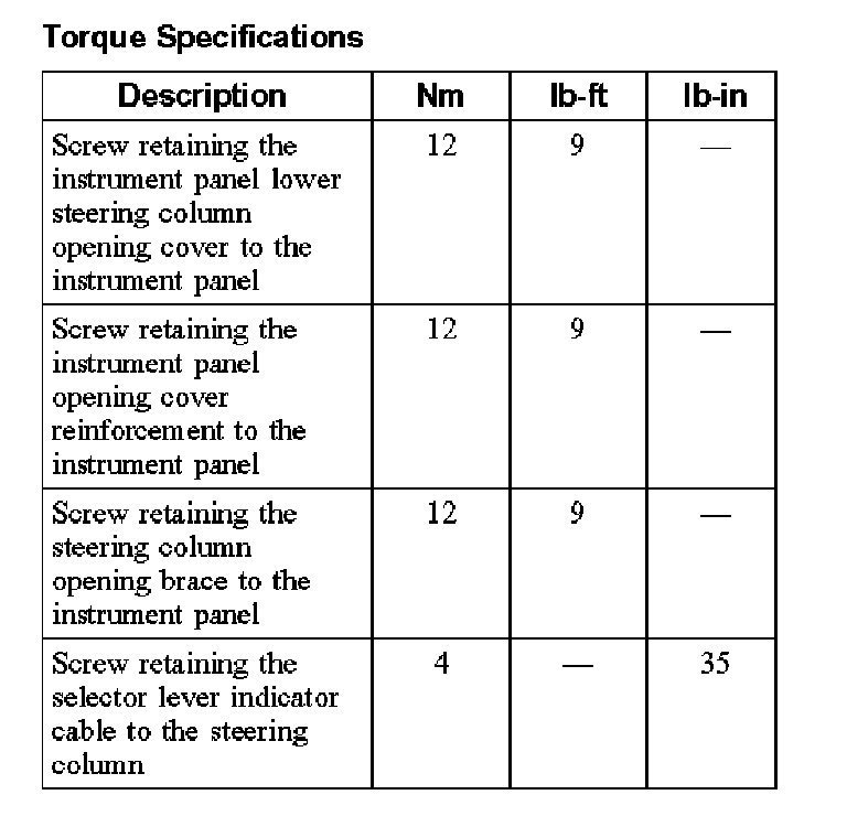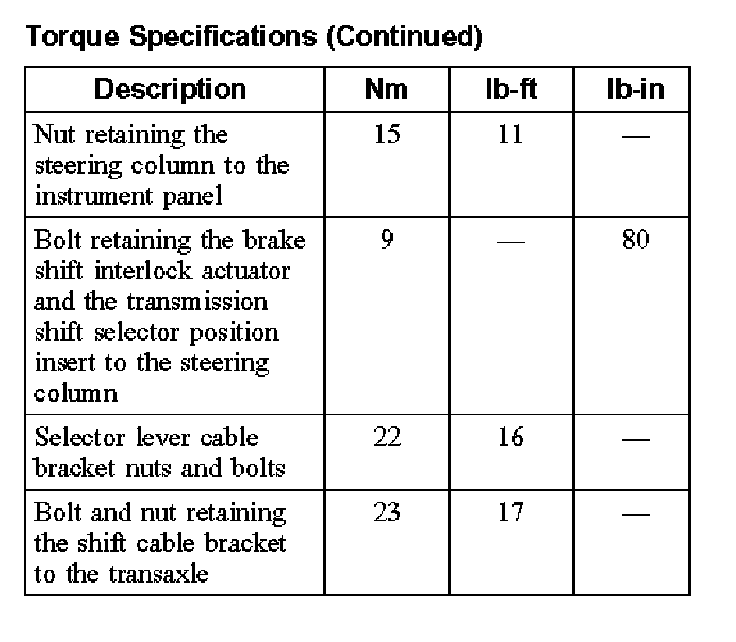 Torque Specifications: