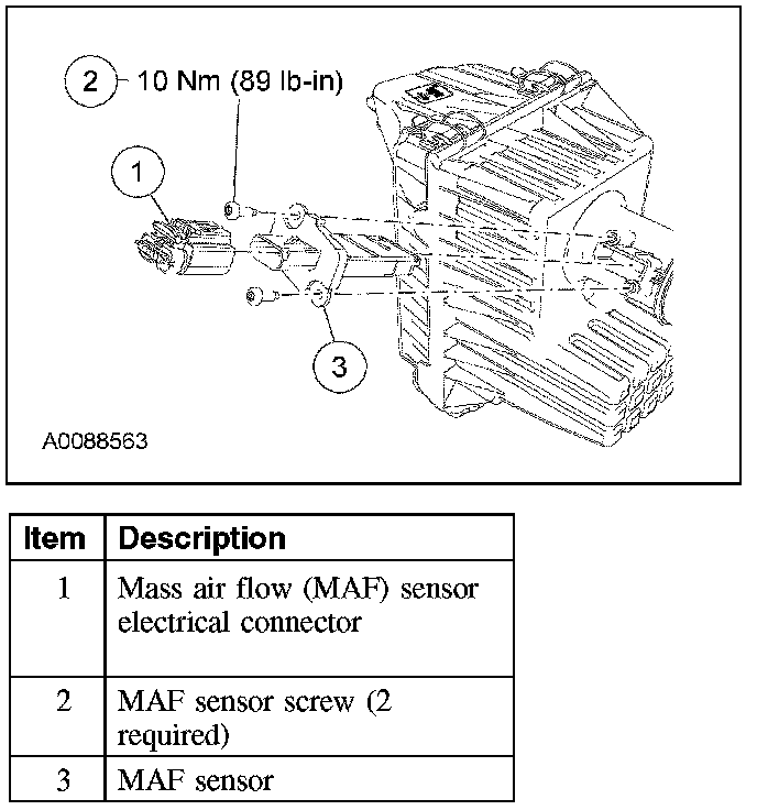 2. Disconnect the mass air flow (MAF) sensor electrical connector.