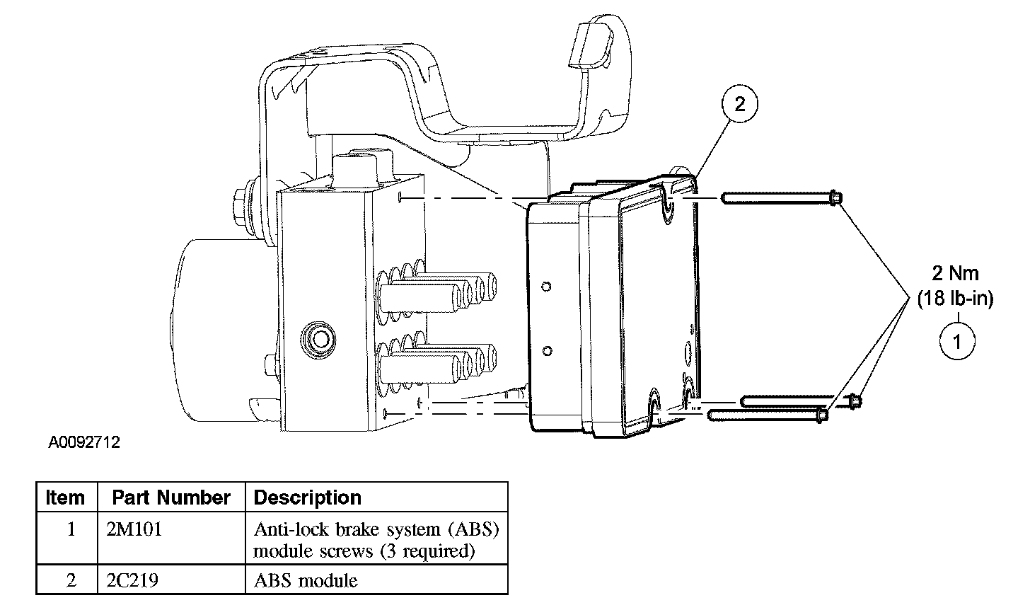 NOTE: When installing a new ABS module it must be configured using the vehicle as-built data and calibrated. For additional information, refer to Information Bus (Module Configuration).
