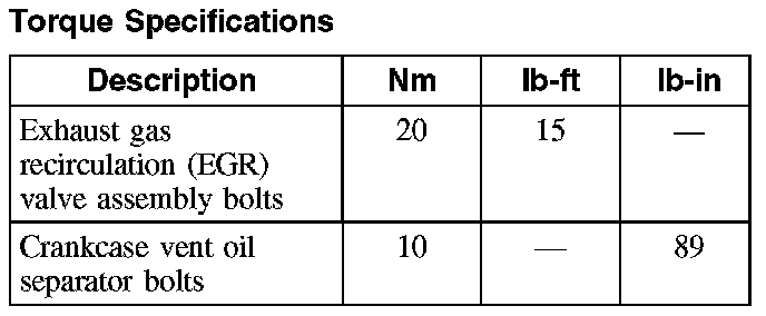 Torque Specifications:
