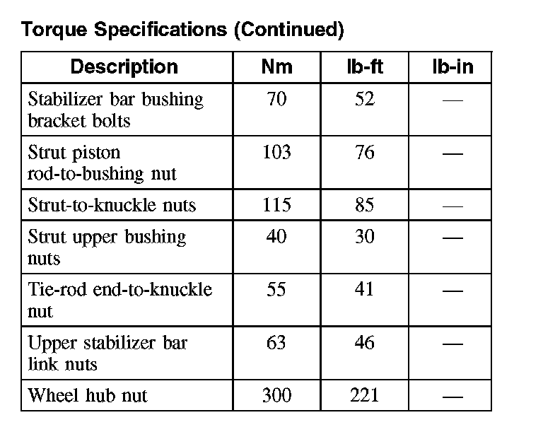 Torque Specifications (Continued):
