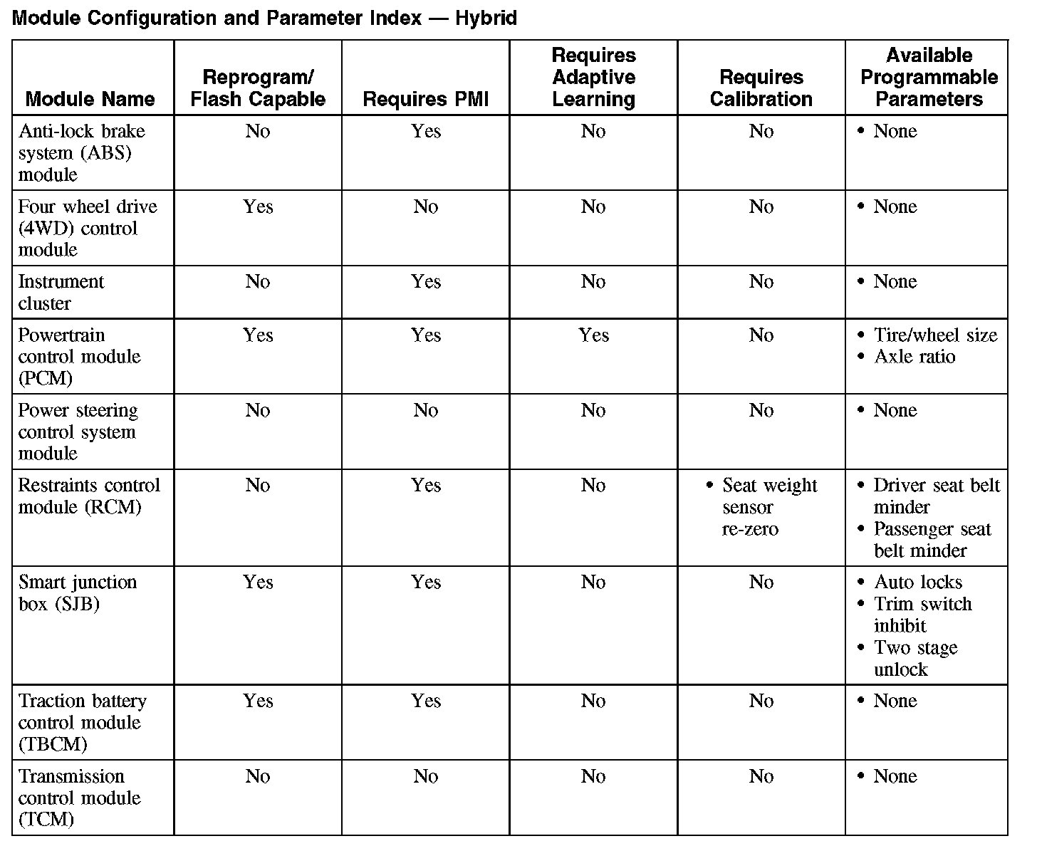 Module reprogramming (also referred to as "flashing") is a scan tool process which updates the strategy/calibration in a module. Module reprogramming is automatically carried out during PMI when a later strategy/calibration is available.