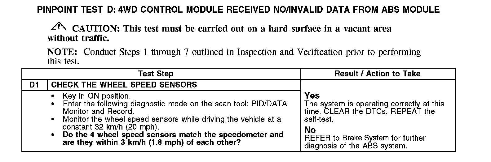 Test D: 4WD Control Module Received No/Invalid Data From ABS Module