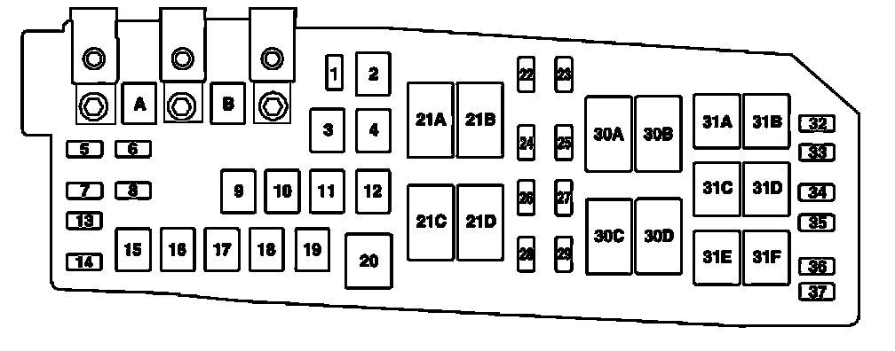 Note: The power distribution box is located in the engine compartment.