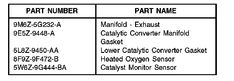 4. Inspect the flange for evidence of weld or other material that is raised on the sealing surface and may prevent complete sealing at the joint. If this condition is found, replace the manifold catalyst assembly and both heated oxygen sensors (H025). Refer to WSM 309-00.