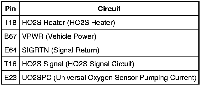 - harness circuits: HO2S11, HO2S12, HTR11, HTR12, UO2SPC, SIGRTN, and VPWR