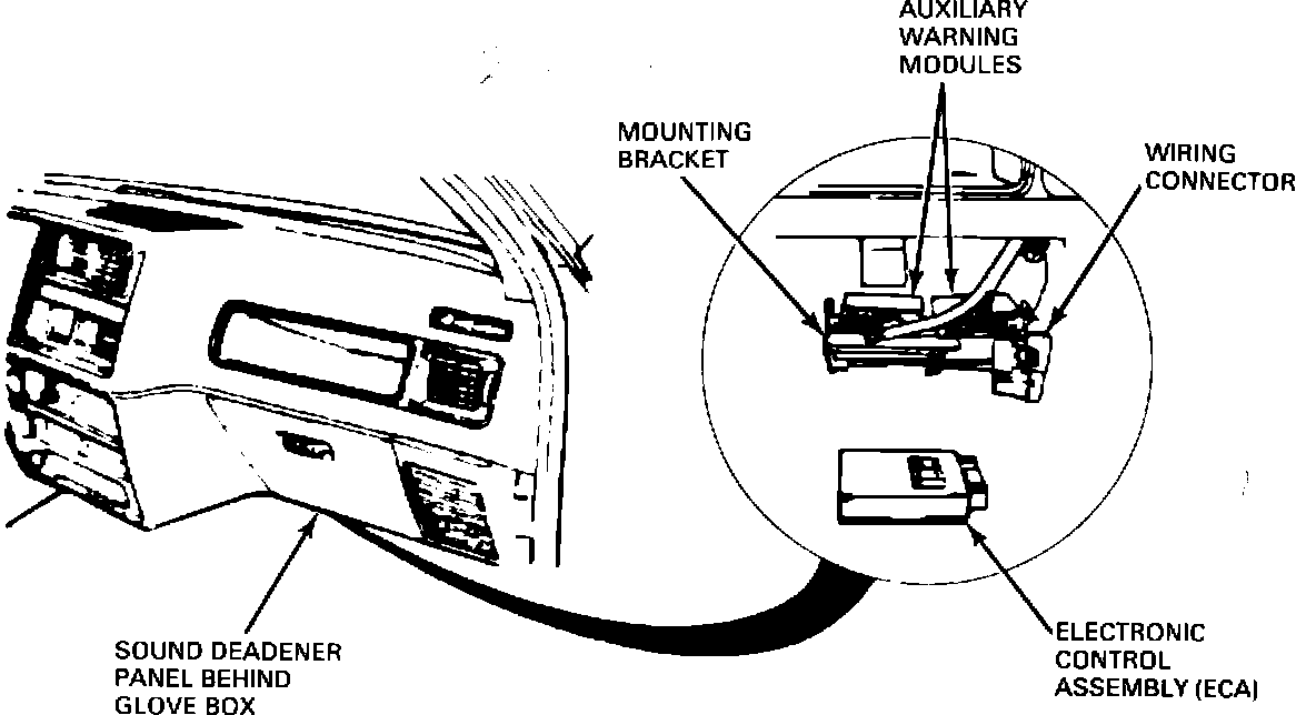 6. Reinstall the ECA processor into the mounting bracket and attach the sound deadening panel to the bottom of the instrument panel.