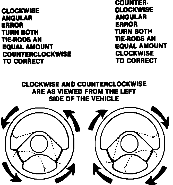 3. Rotate tie rods in equal amounts as indicated in Fig. 3. Refer to alignment marks made with grease pencil to ensure both tie rods are being rotated equal amounts.