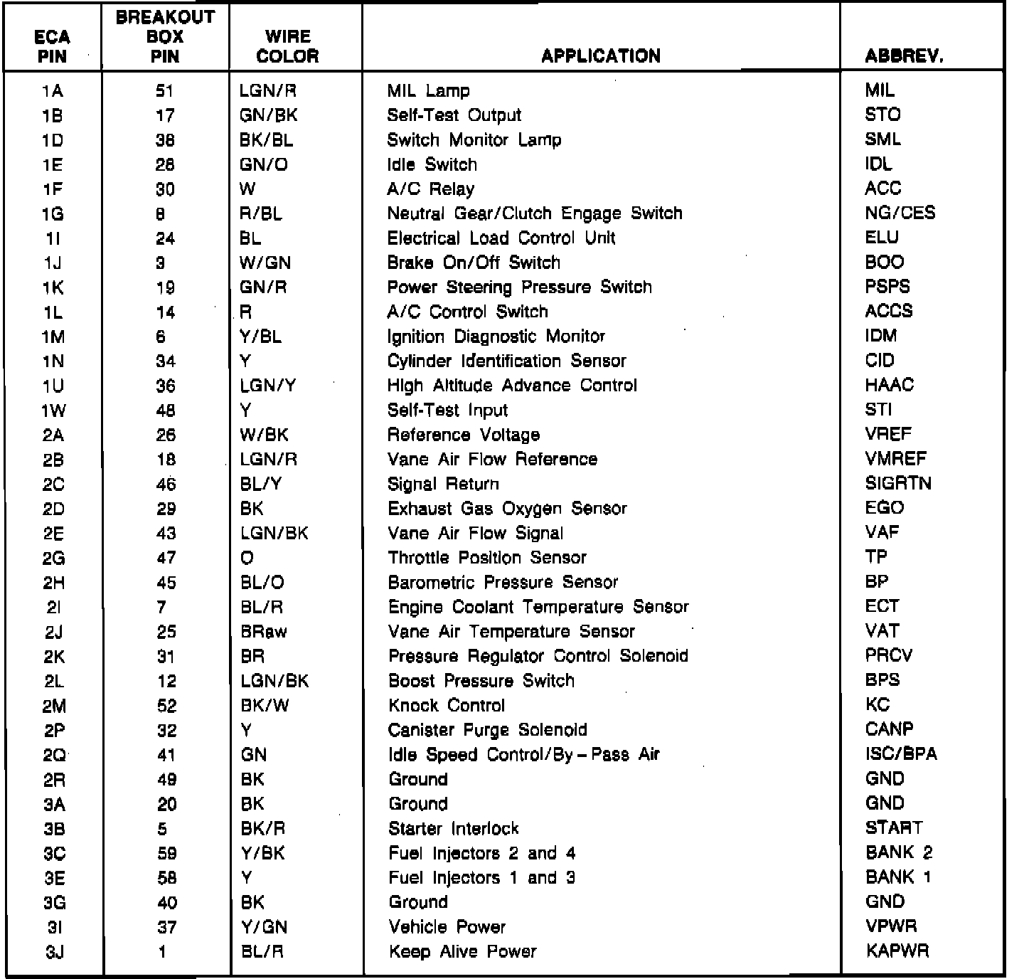 Electronic Control Assembly (ECA) Pin Identification 1.6L Turbo: