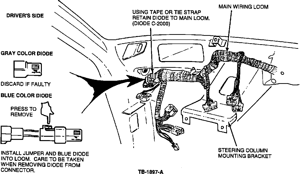 ^ Diode (C2000) - is located on the main wiring harness, above the fuse panel on the left side of the the instrument panel, Figure 1.