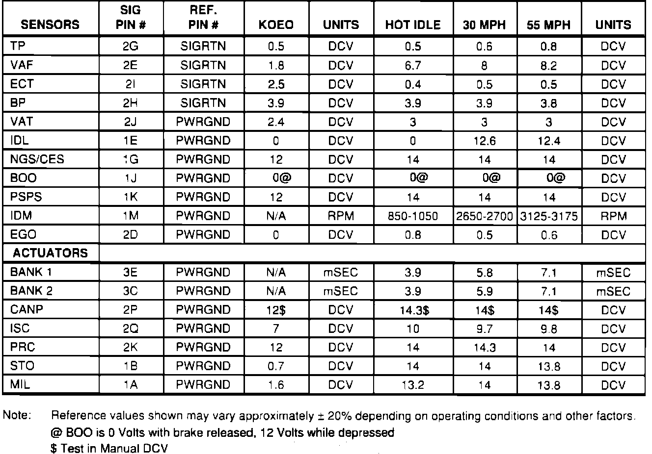 Normal Scan Data Values (Includes PID's)