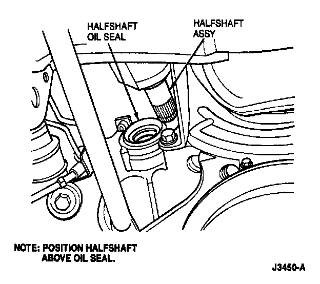 b. Position halfshaft into transaxle and align splines.