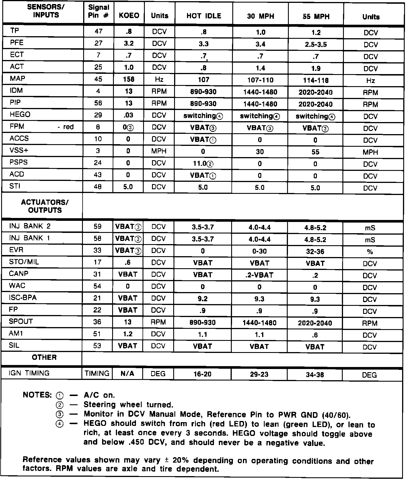 Normal Scan Data Values (Includes PIDs)
