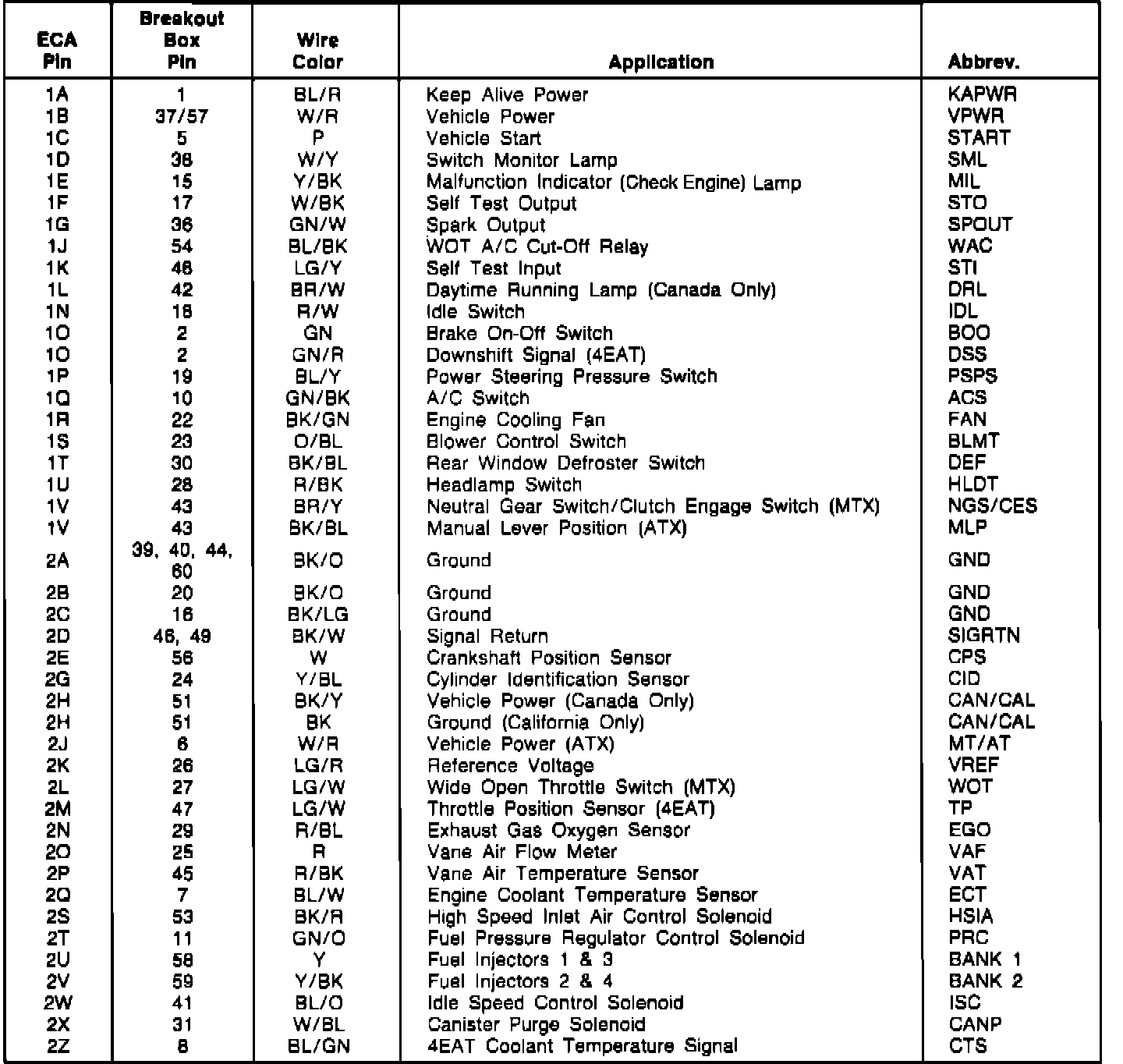 Electronic Control Assembly (ECA) Connector Pin Identification: