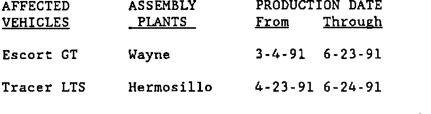 Certain 1991 Escort GT and Tracer LTS cars equipped with 1.8L engines and 5-speed manual transmissions. Specific vehicle information (see illustration)