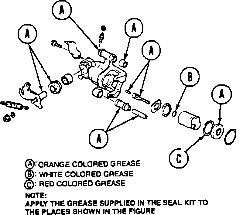 1. Lubricate the needle bearings with the special grease included in the caliper rebuilding kit part No. FOJY-2221-A as shown in Fig. 29.