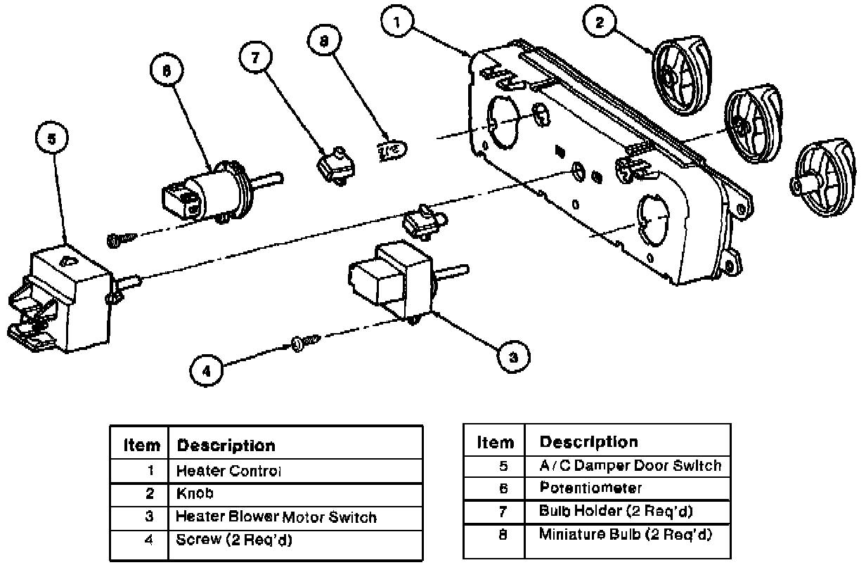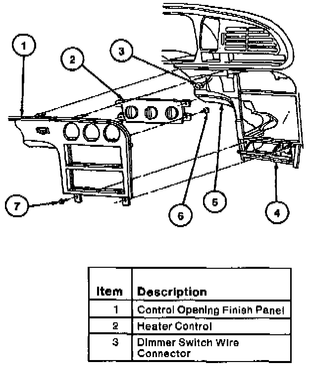 5. Open ash receptacle and remove two screws retaining control opening finish panel to instrument panel. Snap finish panel away from instrument panel.