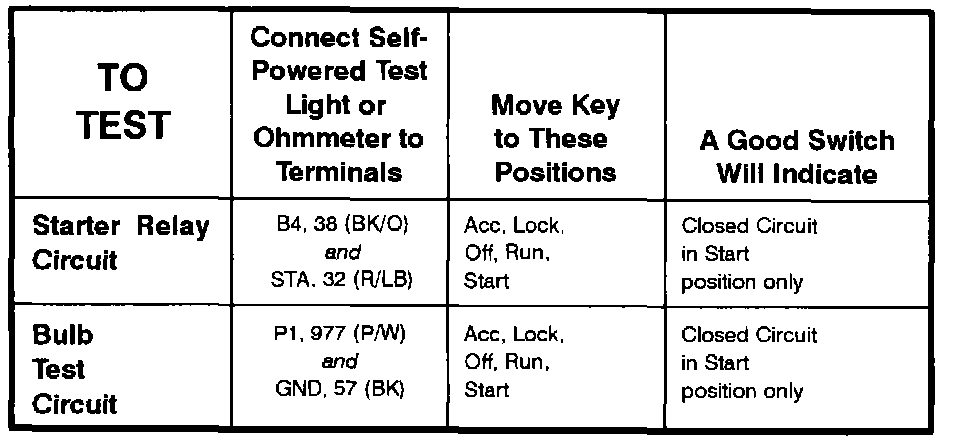 Ignition Switch - Component Testing Procedure (Part 2 Of 2):